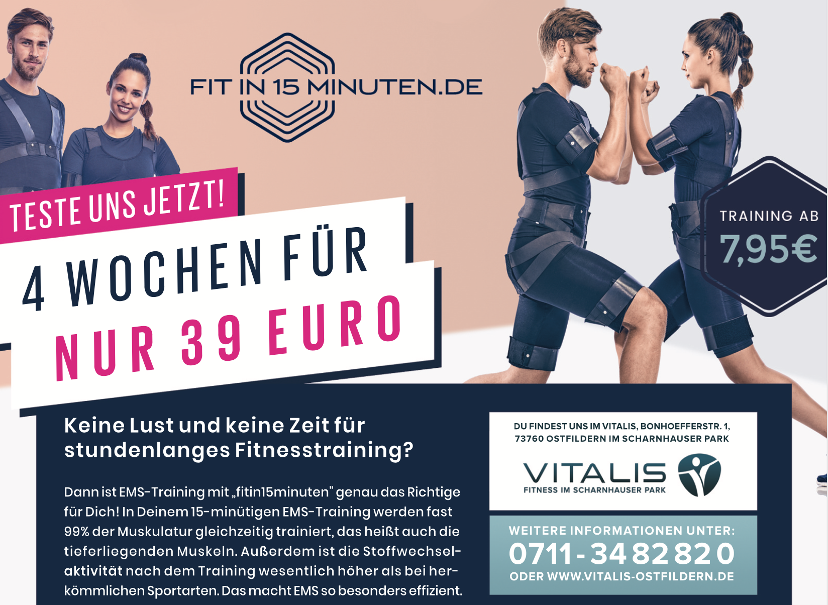 Das Vitalis-Fitnesskonzept kombiniert das Beste aus verschiedenen Trainingswelten, um dich nachhaltig zu motivieren! Nutze das Studio vor Ort, mit zertifizierten Trainern,Â